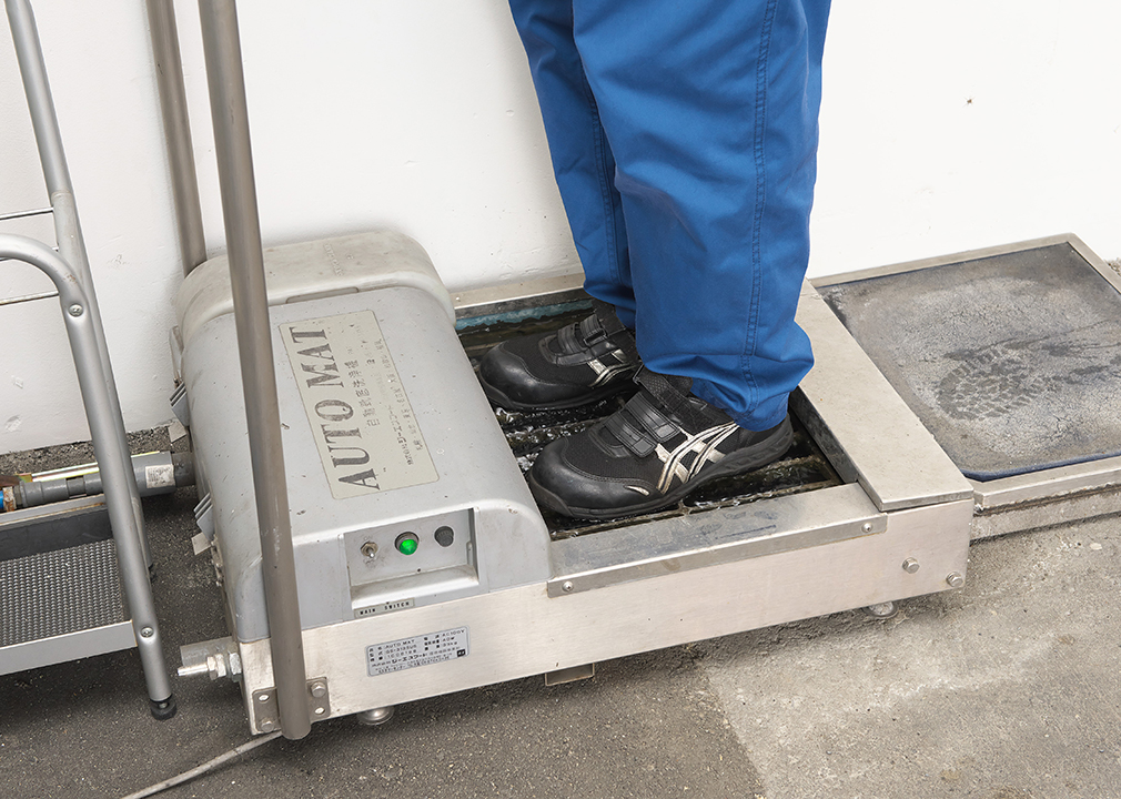工場入場前は足元も清潔にし、異物侵入を防止します。
