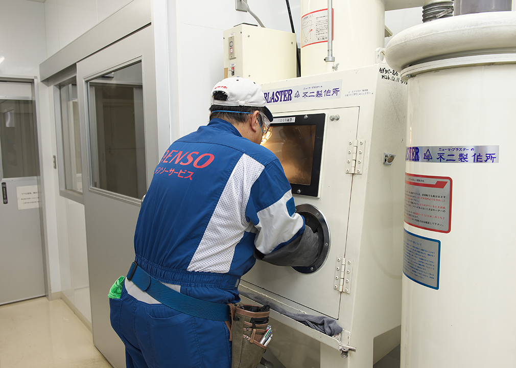 洗浄後の部品に粉末状のビーズを吹き付け、部品表面を仕上げます。