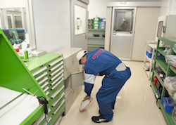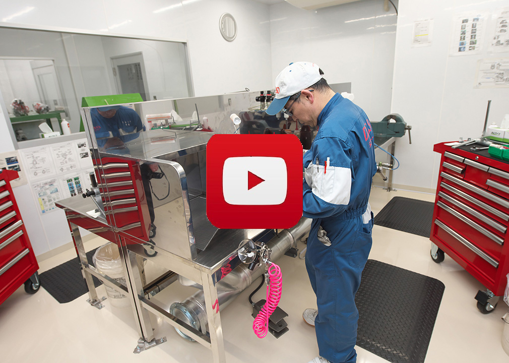 クリーンルーム入室前にサプライポンプ並びに使用部品のエアブローを行います。