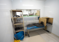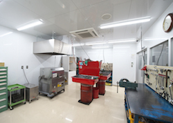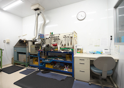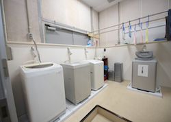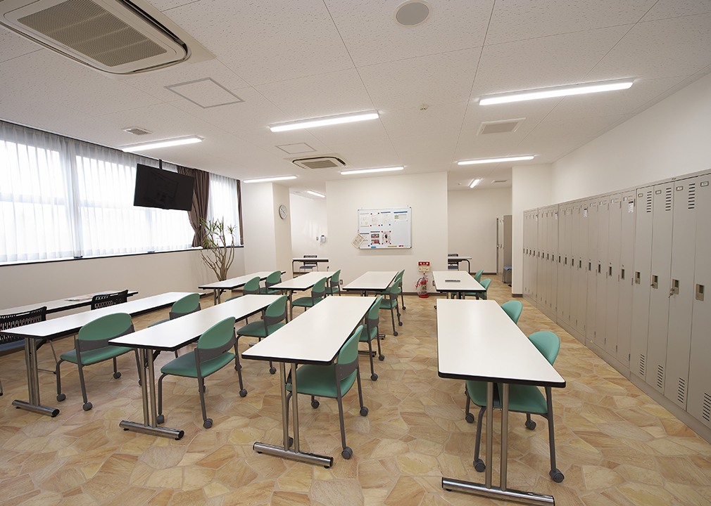 いうまでもなく作業服は常に清潔にしています。写真右奥にシャワー室があります。