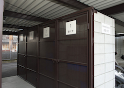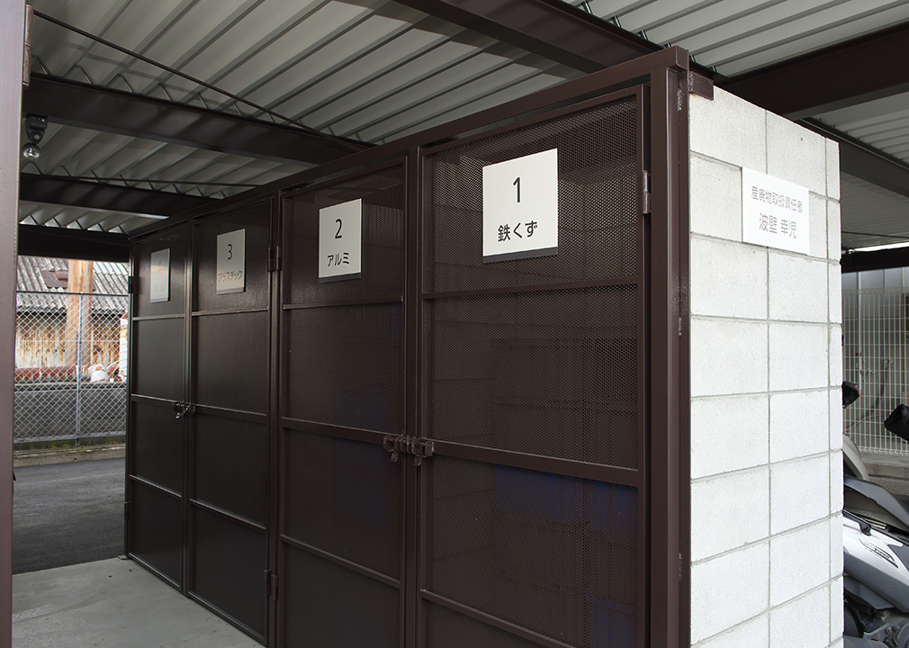 廃油・廃材等分別仕分けします。雨水防止対策として屋根を設置、床は防水塗装をしています。